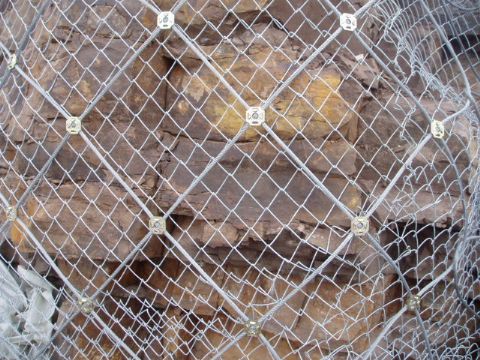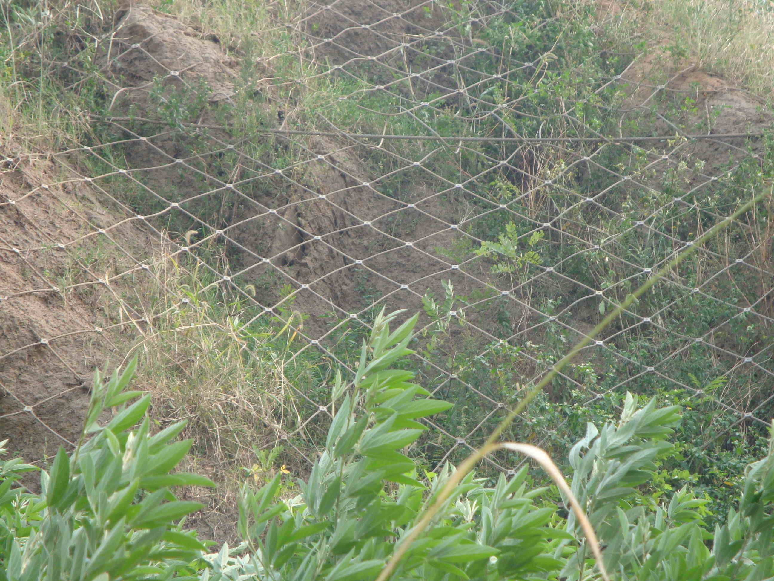 柔性邊坡防護網作用原理上類似于噴錨和土釘墻等面層護坡體系,但因其柔性特征能使系統將局部集中荷載向四周均勻傳遞以充分發揮整個系統的防護能力,即局部受載,整體作用,從而使系統能承受較大的荷載并降低單根錨桿的錨固力要求 。