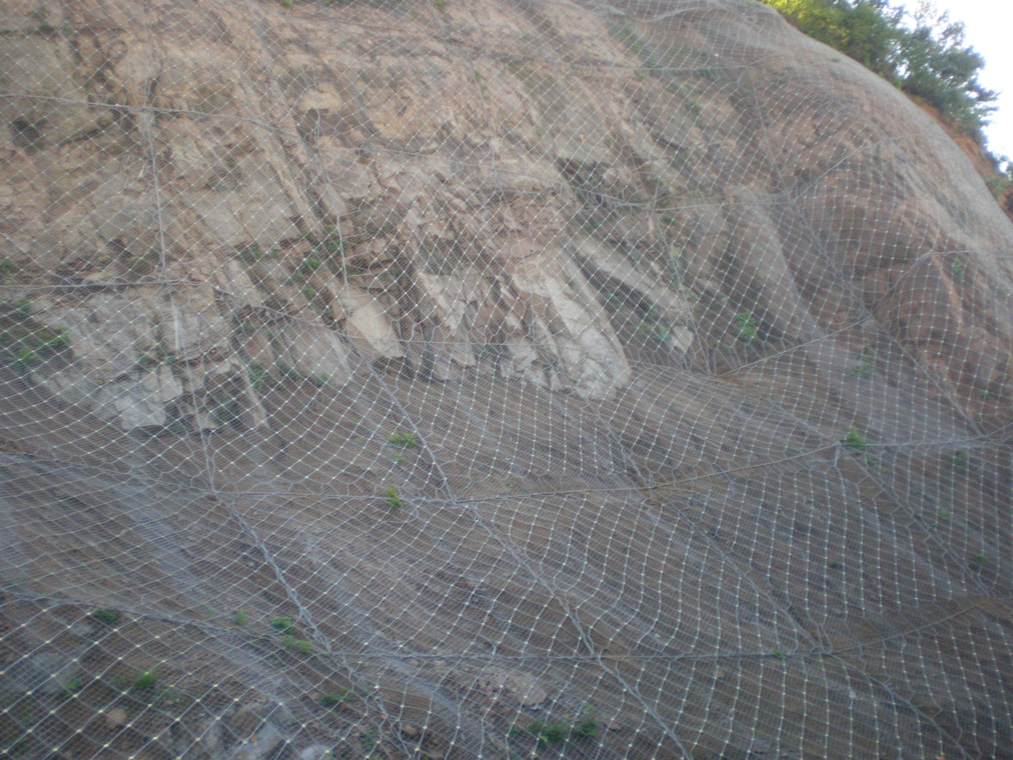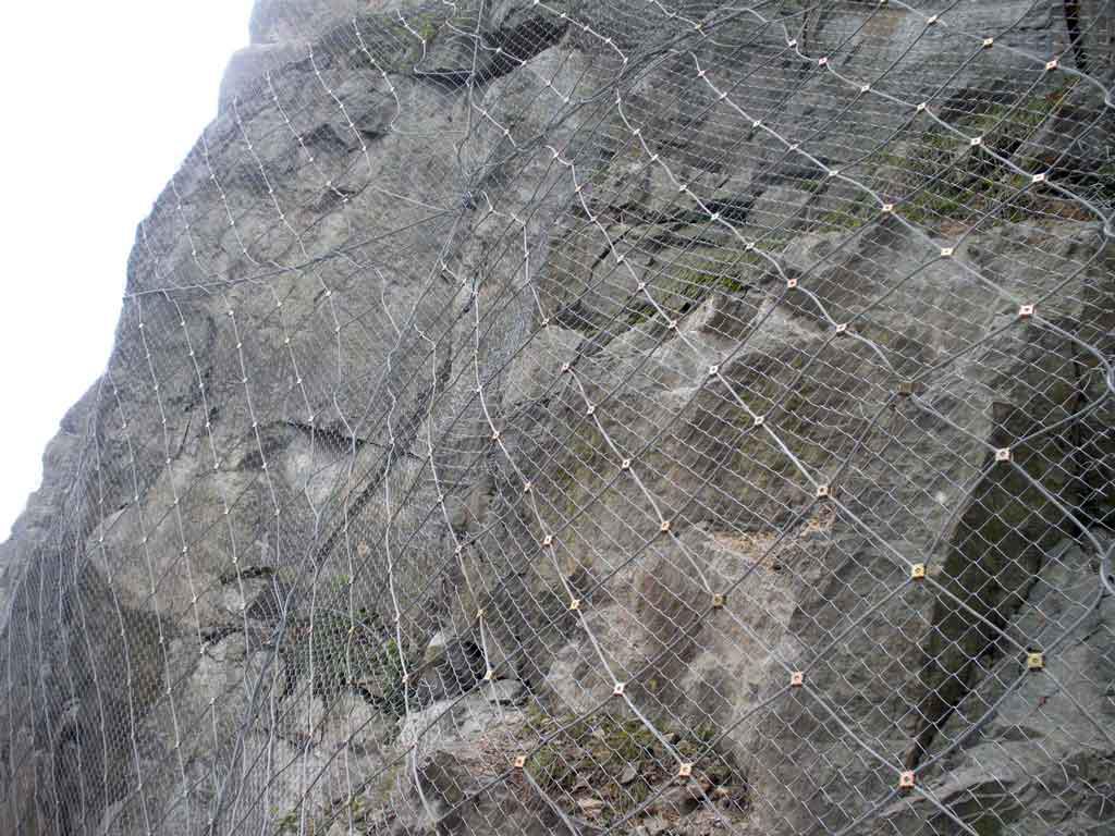 產品說明:TECCO鋼絲格柵網防護系統屬于SNS(Safety Netting System)主動防護系統.TECCO鋼絲格柵網通過預應力鋼筋(錨桿)或鋼絲繩錨桿(有邊沿支撐繩時采用)、專用錨墊板以及必要時的邊沿支撐繩等固定方式,將柔性防護網覆蓋在有潛在地質災害的坡面上;預應力錨桿對柔性防護網部分實現預張,從而對整個邊坡形成連續支撐,其預張拉作業使系統盡可能緊貼坡面并形成了抑制局部巖土體移動或在發生局部位移或破壞后將其裹縛(滯留)原位附近的預應力,從而實現其主動防護(加固)功能。