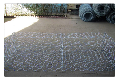 石籠網是由高抗腐蝕、高強度、具有延展性的低碳鋼絲或者包覆PVC的以上鋼絲使用機械編織而成,根據ASTM A 975和EN10223標準,所使用的低碳鋼絲直徑根據工程設計要求而不同。一般介于2.0-4.0mm之間,鋼絲的抗拉強度不少于38kg/m2,金屬鍍層重量一般高于245g/m2石籠網片的邊緣線直徑一般要大于網線直徑。其雙線絞合部分的長度不得小于50mm.以保證絞合部分鋼絲的金屬鍍層和PVC鍍層不受破壞。